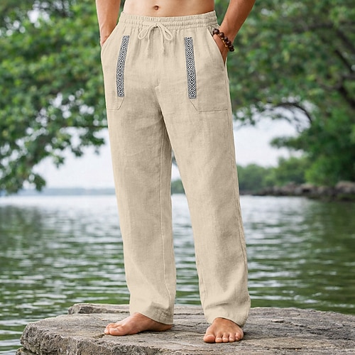 Per uomo Pantaloni di Lino Pantaloni Estivi Pantaloni da Spiaggia Coulisse Patchwork Gamba Dritta Semplice Comodità Traspirante Lunghezza intera Casuale Quotidiano Ferie Vacanza Moda Nero Bianco