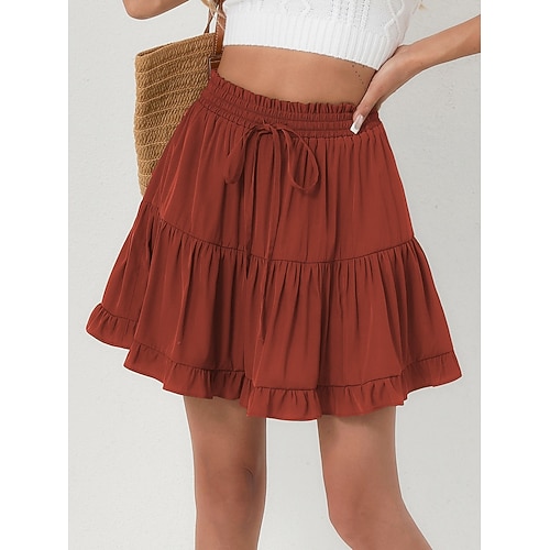 Per donna Gonna da vacanza Moda Casual Mini Vita Alta Gonne Semplice Coulisse Volant Elasticizzato Quotidiano Streetwear Nero Bianco Arancione Marrone Estate Poliestere