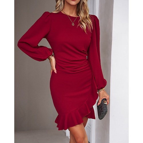 Per donna Mini Abito Abito in Raso Vestito da Festa Tubino Elegante Moderno Manica a Palloncino Festa serale Feste Cocktail party Vestibilità regolare Semplice Manica Lunga Girocollo Nero Vino Blu