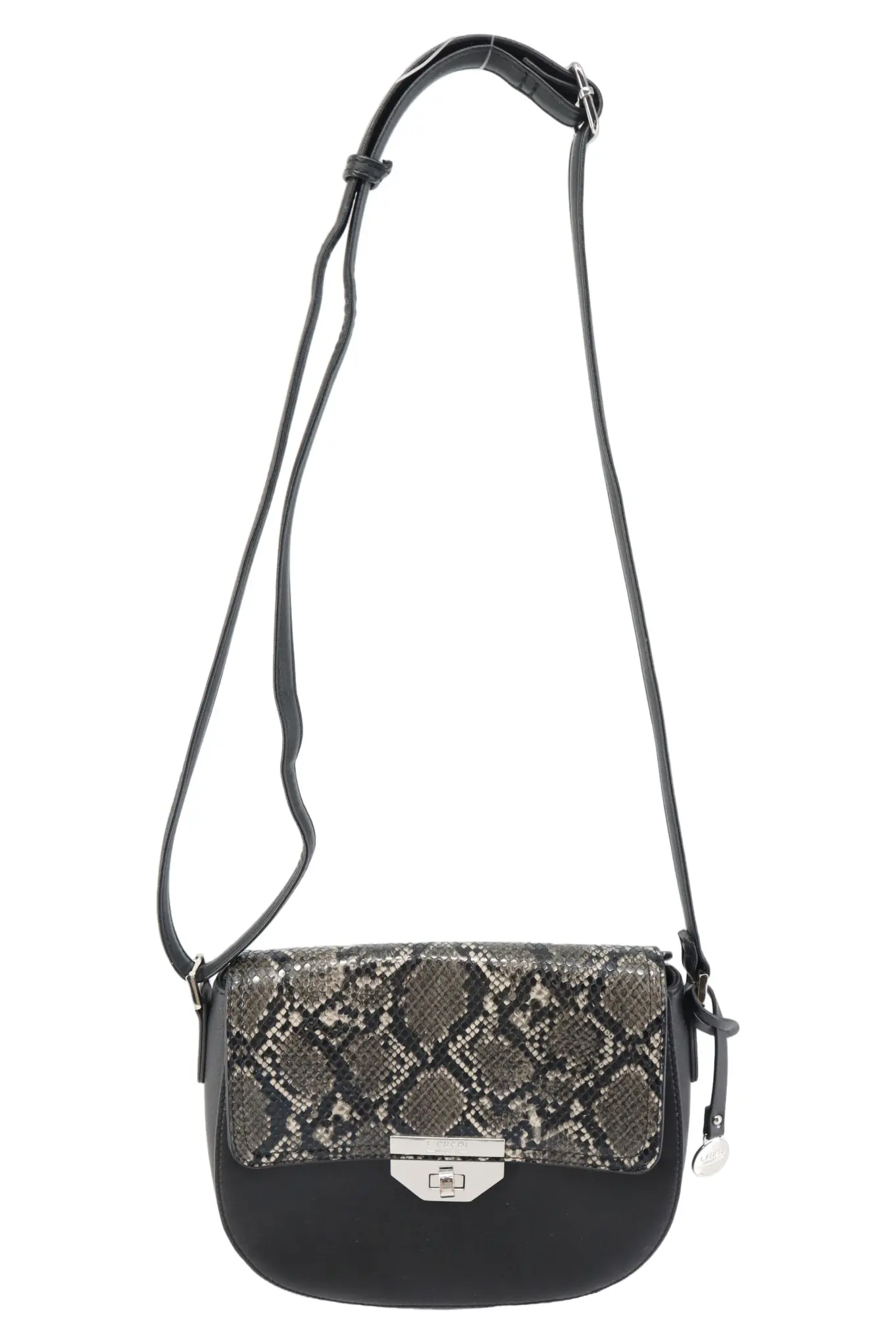 L.CREDI Damen Umhängetasche Schwarz Python-Look 26x20cm
