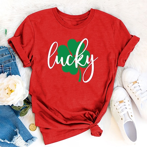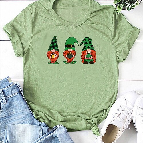 Giorno di San Patrizio Festa di San Patrizio Per donna Maglietta Trifoglio Moda Manica Corta Girocollo Top Regolari Casuale Giorno di San Patrizio Stampato Verde primavera Nero Bianco Verde chiaro