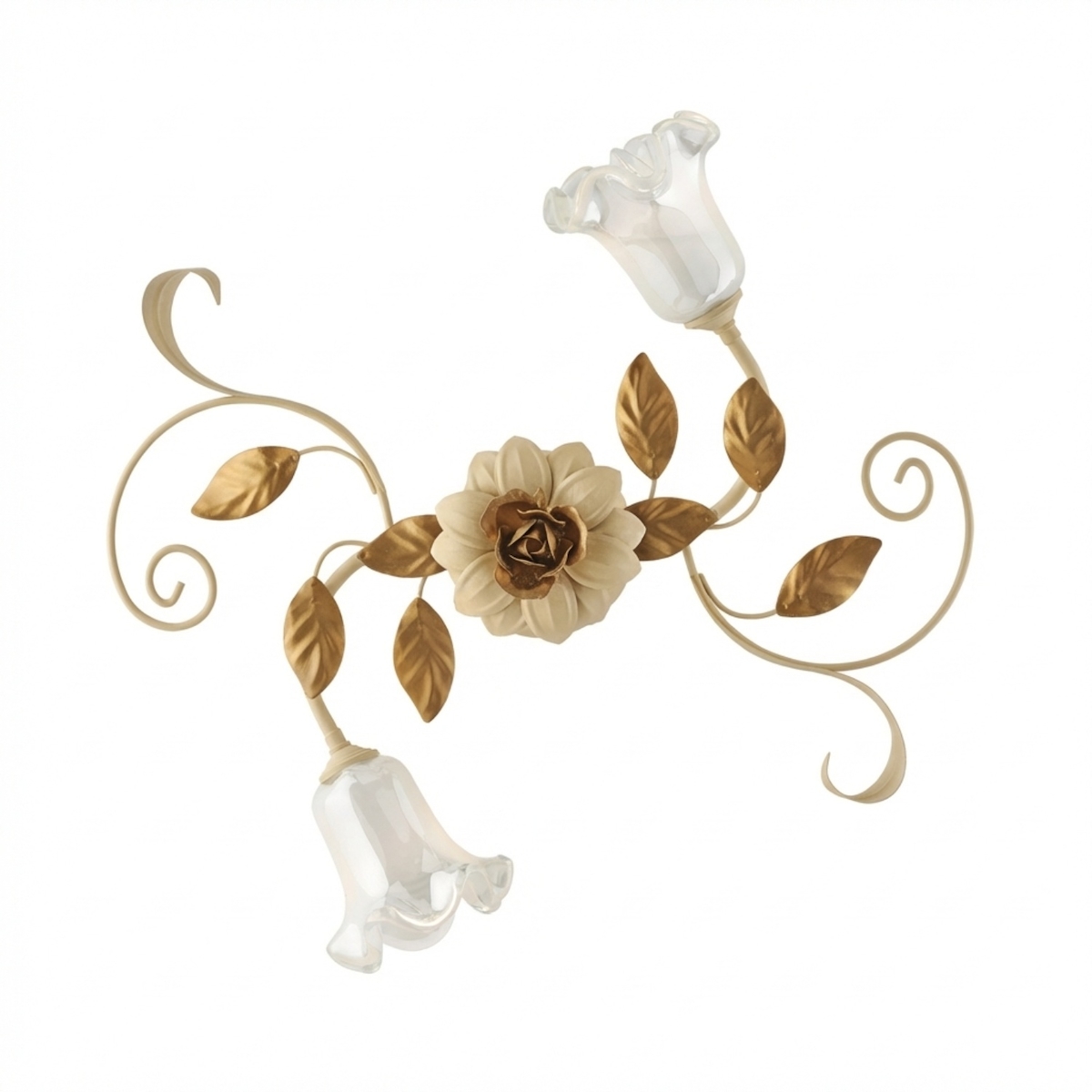 Bonetti Illumina Cesto - Deckenleuchte aus elfenbeinfarben gebeiztem und lackiertem Eisen, 2 Lichter, H.17 - Ø52 - BL274-PL2-AV
