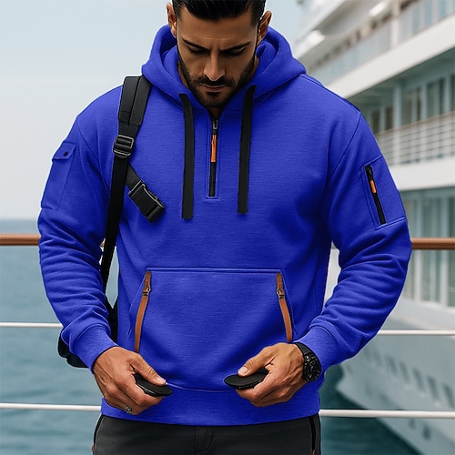 Per uomo Felpa con cappuccio Felpa con cappuccio e zip corta Felpa con cappuccio tattica Rosso bordeaux Nero Bianco Blu marino Blu Reale Con Cappuccio Semplice Cerniera Sport Outdoor Casuale