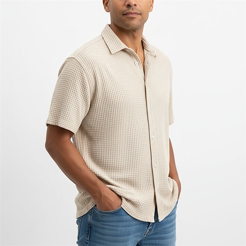 Per uomo Camicia Camicia a nido d'ape Camicia Estiva Camicia casual Camicia da Spiaggia Camicia con Bottoni Nero Bianco Verde chiaro Rosa Blu reale Manica Corta Semplice Bavero Vacanza Camicia