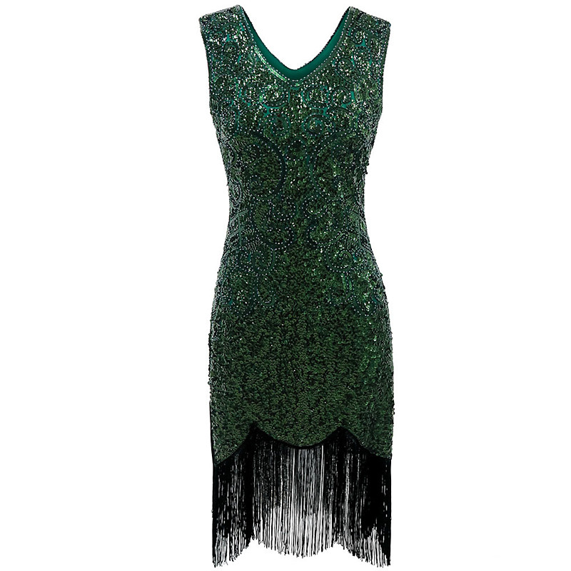 Roaring 20s 1920s Knee Length Flapper Dress Sleeveless The Great Gatsby Sequins Fringe V Neck Fancy Dress Women's Christmas Carnival Masquerade Retro Theme Party Charleston Dance Adults' Dress
