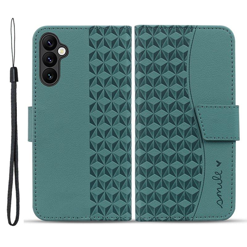 Samsung Galaxy A35 5G Skal Prägad Diamant Äkta Läder Skydd - Grön
