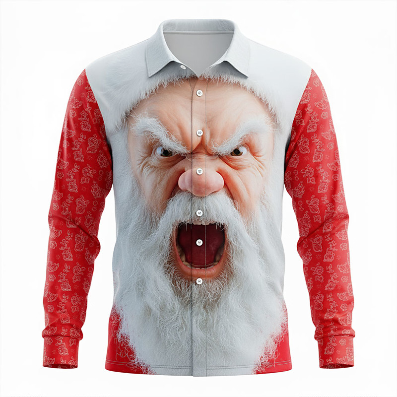Christmas Men's Santa Claus 3D Cartoon Human face Shirt Button Up Shirt Long Sleeve Funny Outdoor Holiday Spring Fall Turndown 3D Print Collared Shirts Red 1 Red Red 2