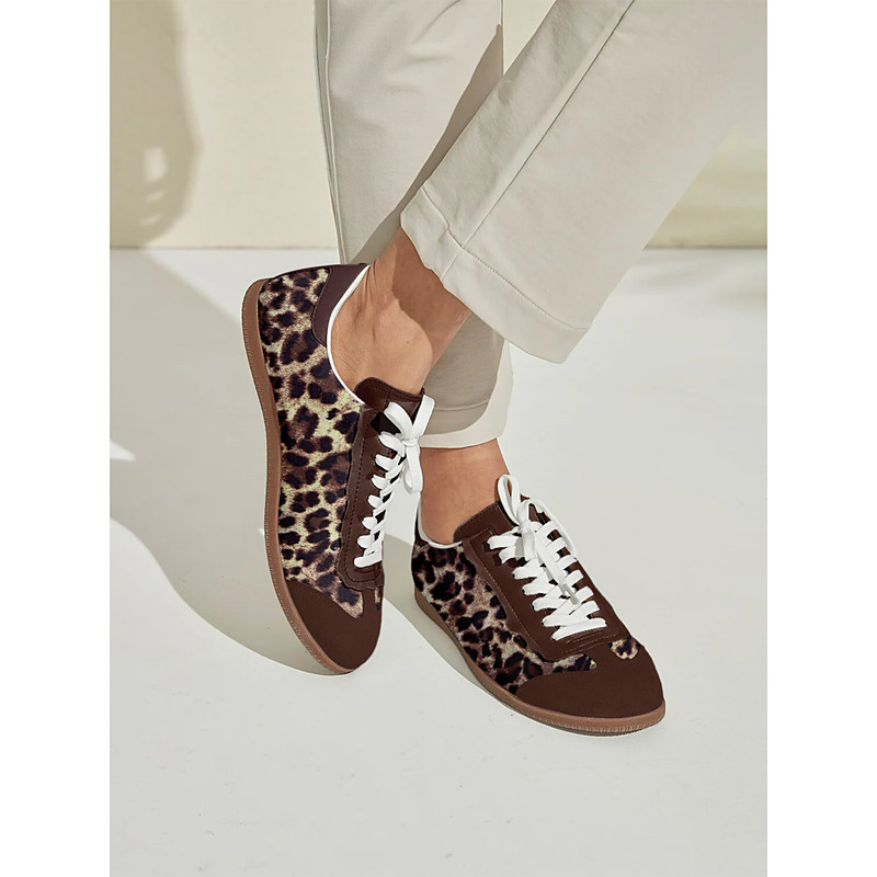 Women Lace Up Faux Leather Animal Printed Golf Shoes