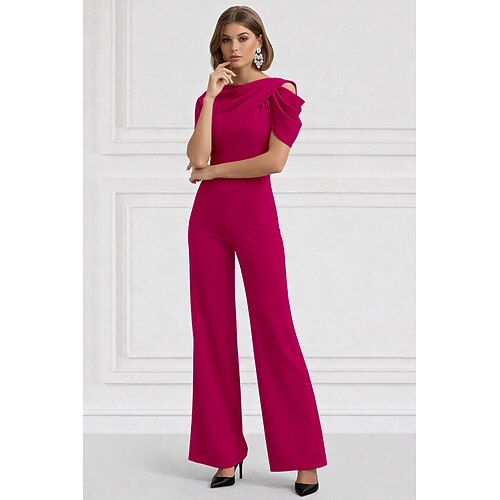 Tute Lunghezza al pavimento Abito da cerimonia per signora Manica Corta Girocollo Elegante Semplice Formale Ospite di nozze Riunione di famiglia Tessuto Elasticizzato con Tinta unita