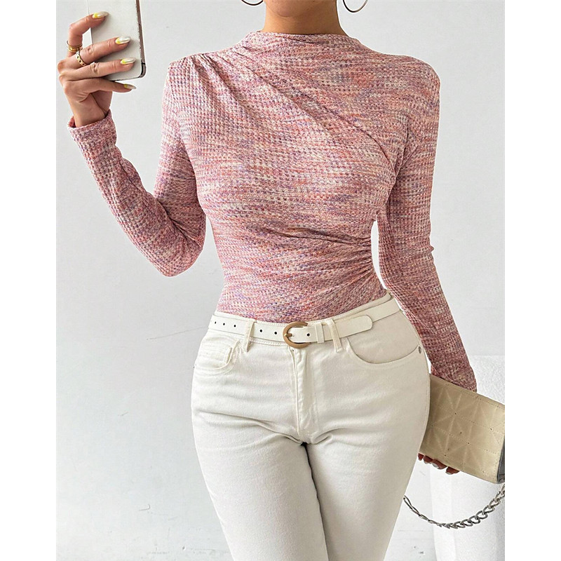 Women's Blouse Dressy Tops Solid Color Stylish Casual Long Sleeve High Neck Regular Tops Daily Holiday Ruched Pink Spring Fall