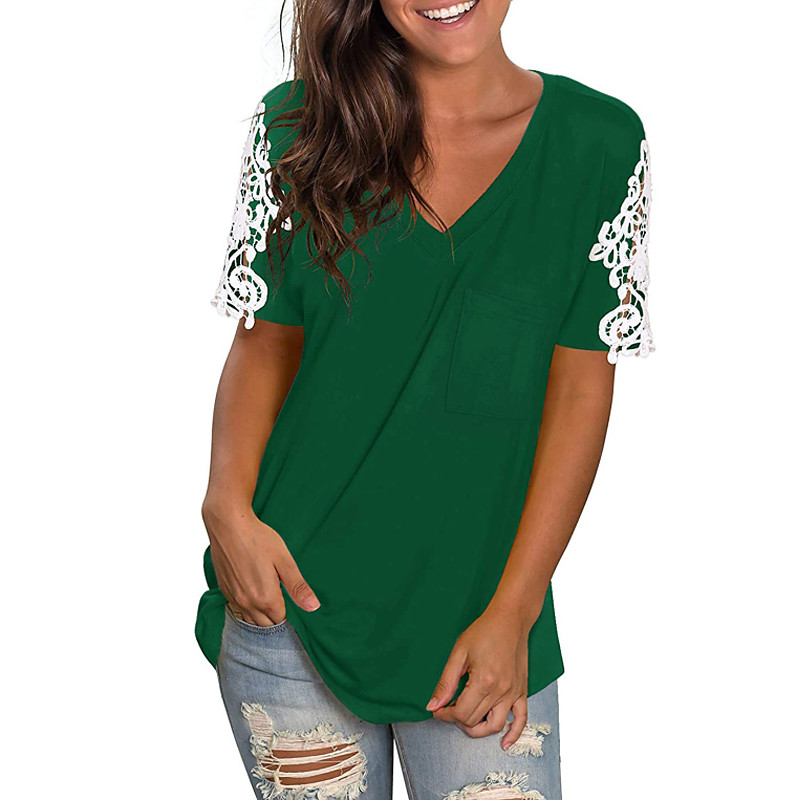 Women's Blouse Lace Tops Plain Vintage Stylish Short Sleeve V Neck Regular Tops Daily Holiday Going out Lace Patchwork Black White Red Green Gray Summer Spring
