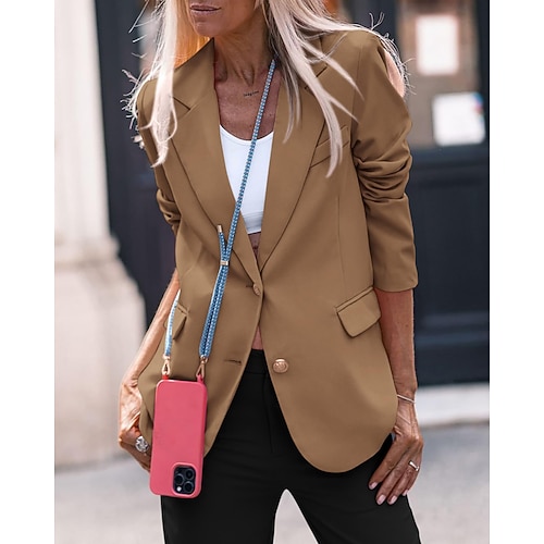 Per donna Blazer Confortevole Tasca Bottoni Attivo Semplice All'aperto Vacanza Uscire Weekend Regolare Collo ripiegato Vestibilità regolare Manica Lunga Capispalla Nero Bianco Vino Autunno Inverno