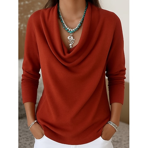 Per donna Blusa Elegante Essenziale Casual Manica Lunga Top Regolari Quotidiano Ferie Vino Rosa polverosa Blu Grigio Autunno Inverno