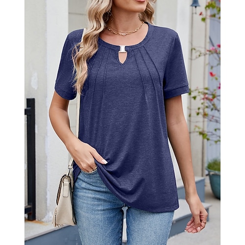 Per donna maglietta Tinta unica Liscio Moda Informale Manica corta Girocollo Top regolari Giornaliero Stampa Nero Bianco Vino Blu marino Azzurro cielo Estate Primavera