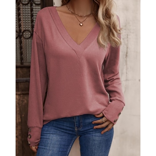 Natale Per donna Top Eleganti Semplice Elegante Vintage Quotidiano Manica Lunga Manica a Vescovo Scollo a V Top Regolari Blu Nero Bianco Rosa Vino Primavera Autunno Inverno