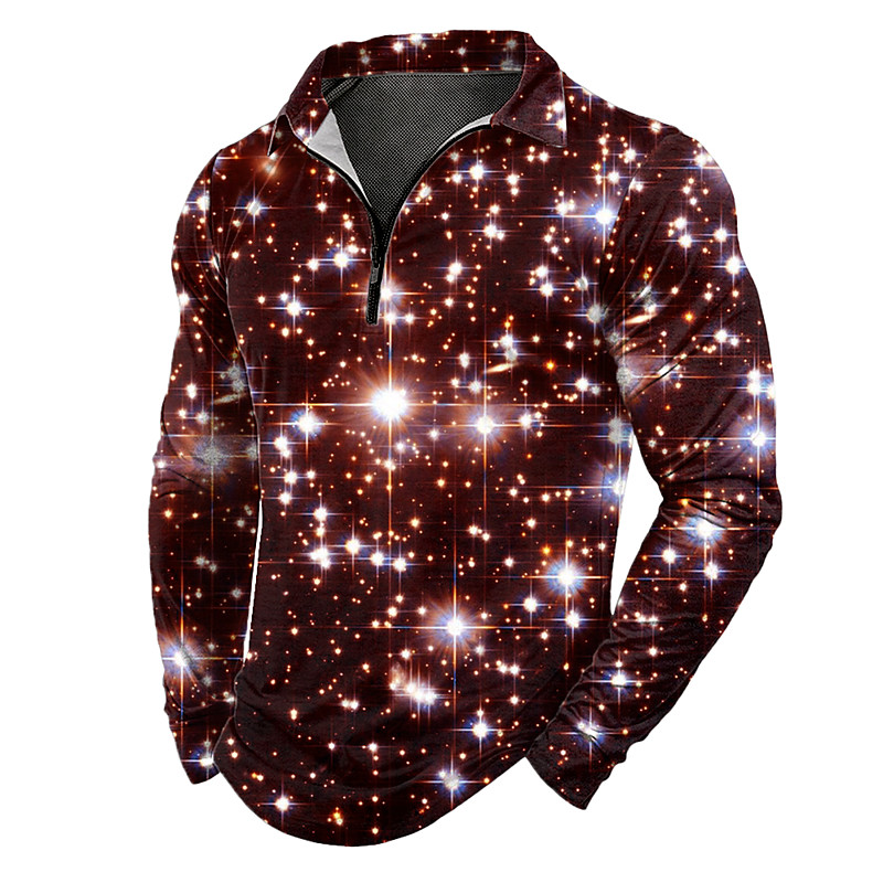 Men's Geometic Zip Polo Shirts Long Sleeve Polo Shirts Lapel Casual Outdoor Street Daily Wear 3D Print Spring Fall Winter Black Purple Orange