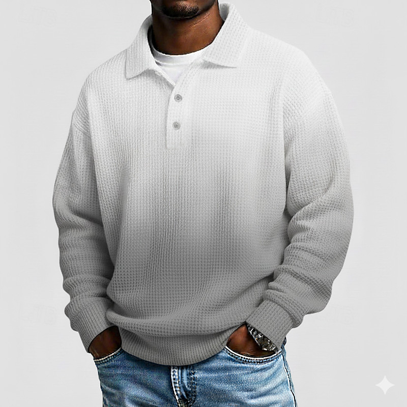 Men's Gradient Ramp Waffle Polo Shirts Long Sleeve Polo Shirts Lapel Sportswear Casual School Athleisure Daily Wear 3D Print Spring Fall Winter Blue Navy Blue Purple