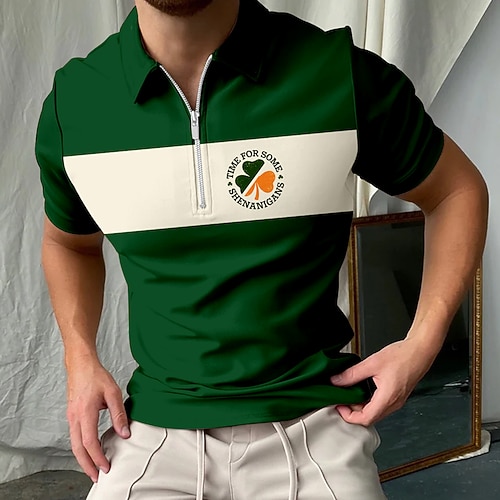 Per uomo Trifoglio Polo con zip Manica Corta Collo ripiegato Casual / Sportivo Casuale San Patrizio Stampa 3D Estate Verde