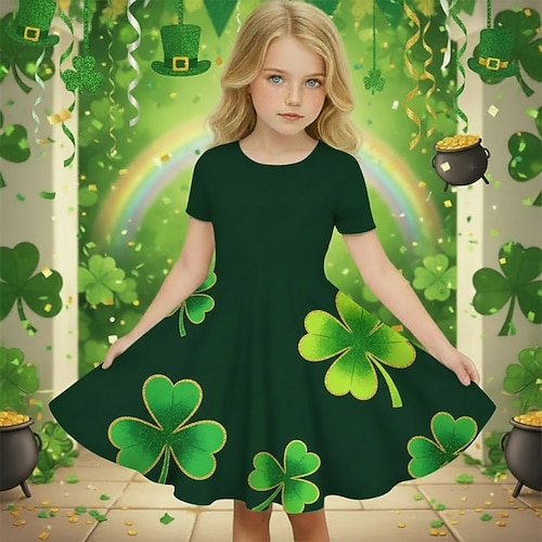 Giorno di San Patrizio ragazze' 3D Grafico Quadrifoglio Giorno di San Patrizio Abito Manica Corta Stampa 3D Estate Primavera Quotidiano Vacanza Feste Carino Essenziale Casual Bambini 4-12 Anni
