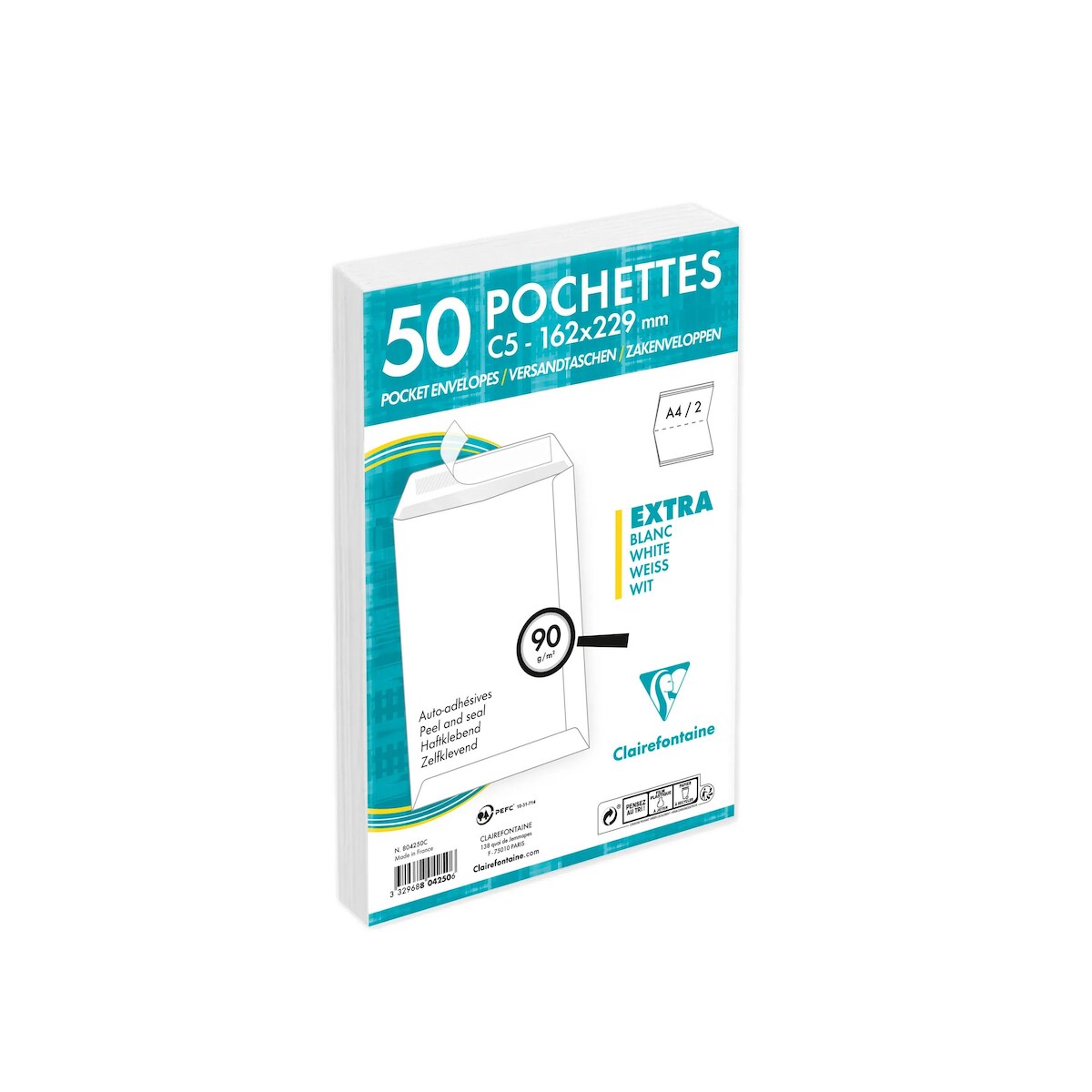 Clairefontaine 500x Versandtaschen haftklebend 162x229mm/C5, 90g - Weiß 804250C