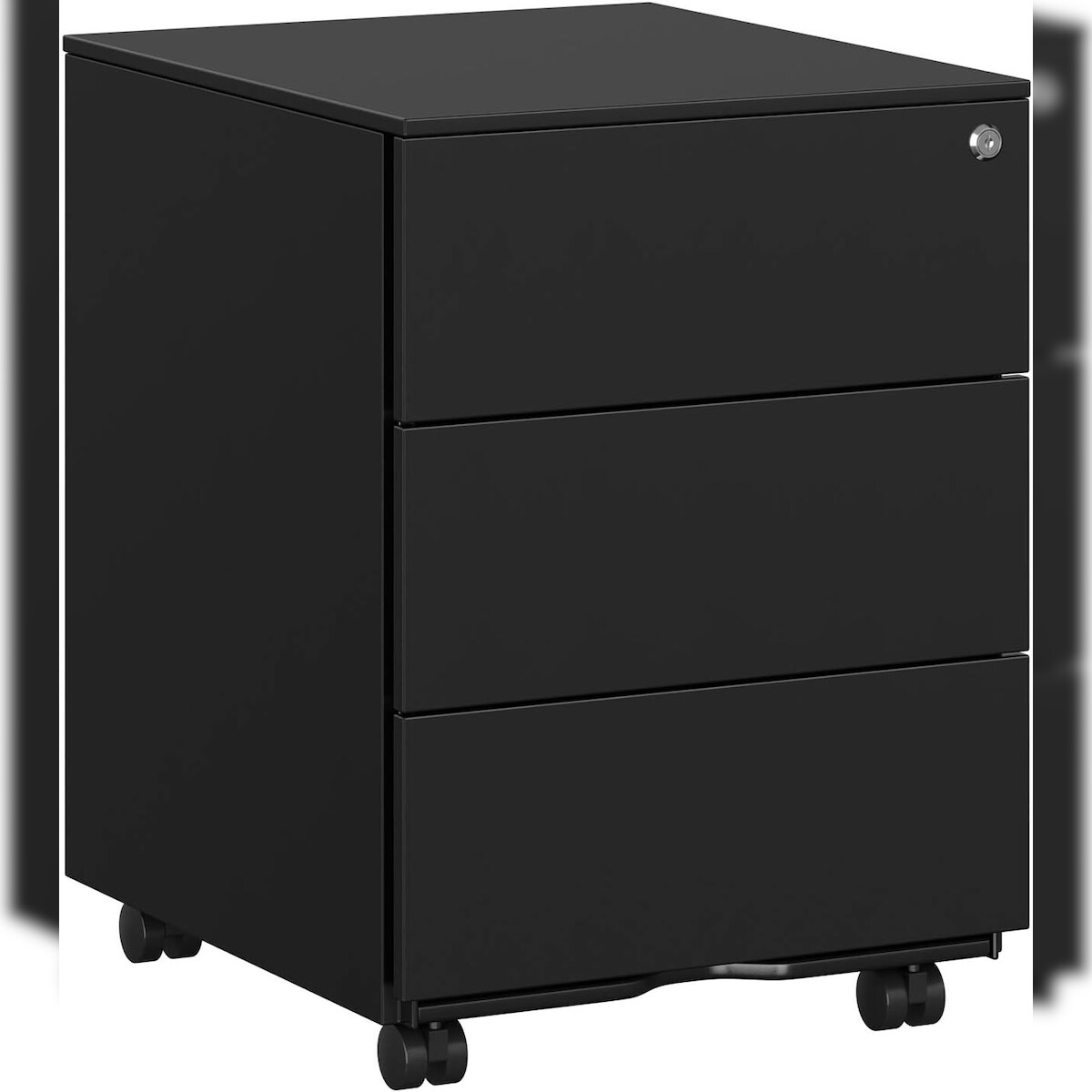 Rollcontainer aus Metall, Metallschrank 55 x 39 x 45 cm, mit 3 Schubladen, vormontiert, Druckerwagen, mobiler Aktenschrank, Mattschwarz