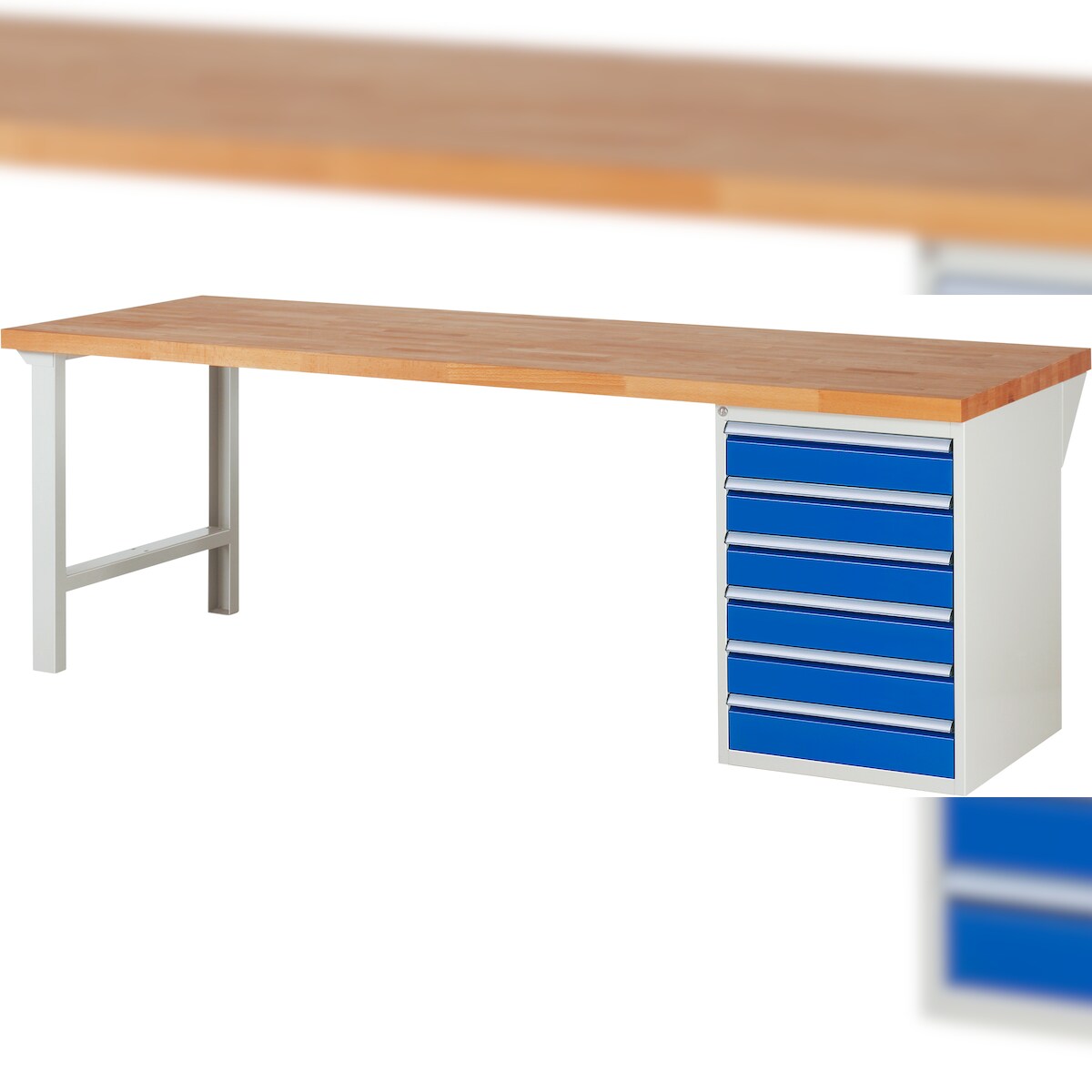 PROREGAL Werkbank Serie 7000 - Modell 7516 | HxBxT 84x200x90cm | 6x Schublade | Schubladenmaße 6x120mm | Lichtgrau | Arbeitstisch Werktisch