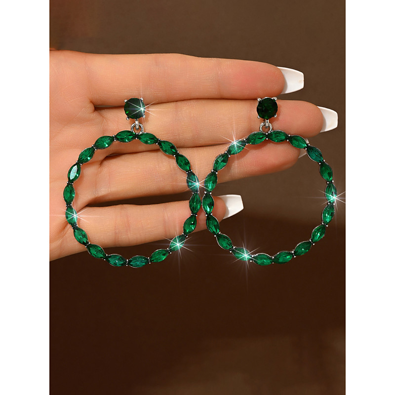 Women's Emerald Crystal Statement Earrings - Luxurious Rhinestone Drop Hoop Designs for Glam Party and Evening Events