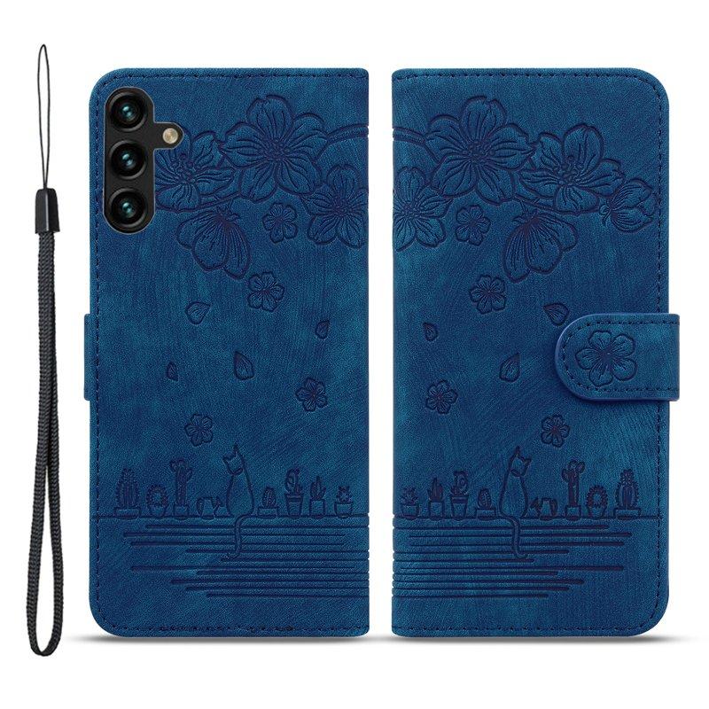 Samsung Galaxy A55 5G Plånboksfodral Konstläder Blommönster - Blå