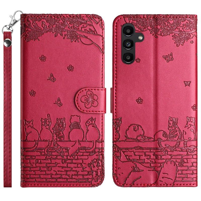 Samsung Galaxy A55 5G Plånboksfodral Konstläder Med Rem - Röd