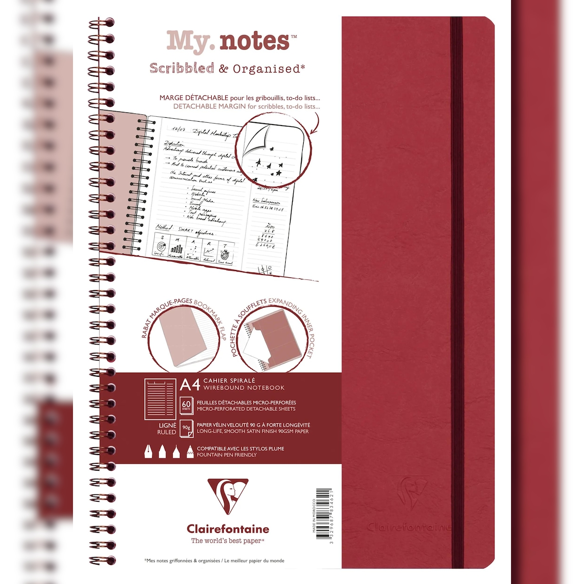 Clairefontaine 5x My.Notes Age Bag, Spiralheft A4, 60 Blatt 90g, liniert mit Kopfleiste, abtrennbar, mikroperforiert - Rot 783462C
