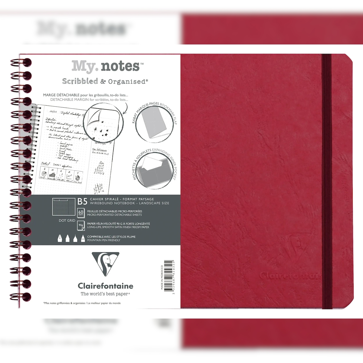 Clairefontaine 5x My.Notes Age Bag, Spiralheft B5 Querformat, 60 Blatt 90g, DOT mit Kopfleiste, abtrennbar, mikroperforiert - Rot 782432C