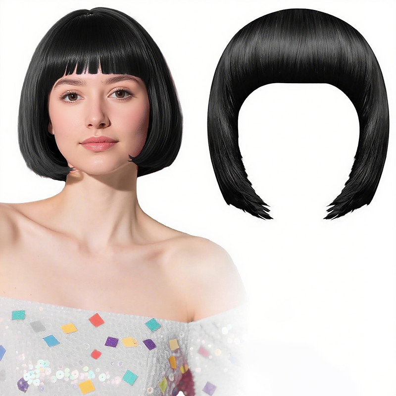 Carnival Wig 2026 Black Blue Purple Straight Bob Short Synthetic Festival Wig Mardi Gras Parade Cosplay Costume Hair for Women