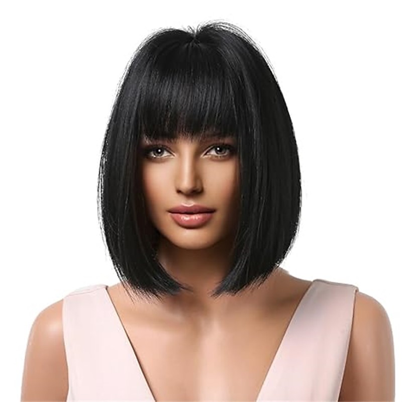 Blue Wig Short Straight Blue Bob Wig With Bangs10 Inch Synthetic Color Wigs For Women Natural Looking Costume Hair For Daily Party Cosplay
