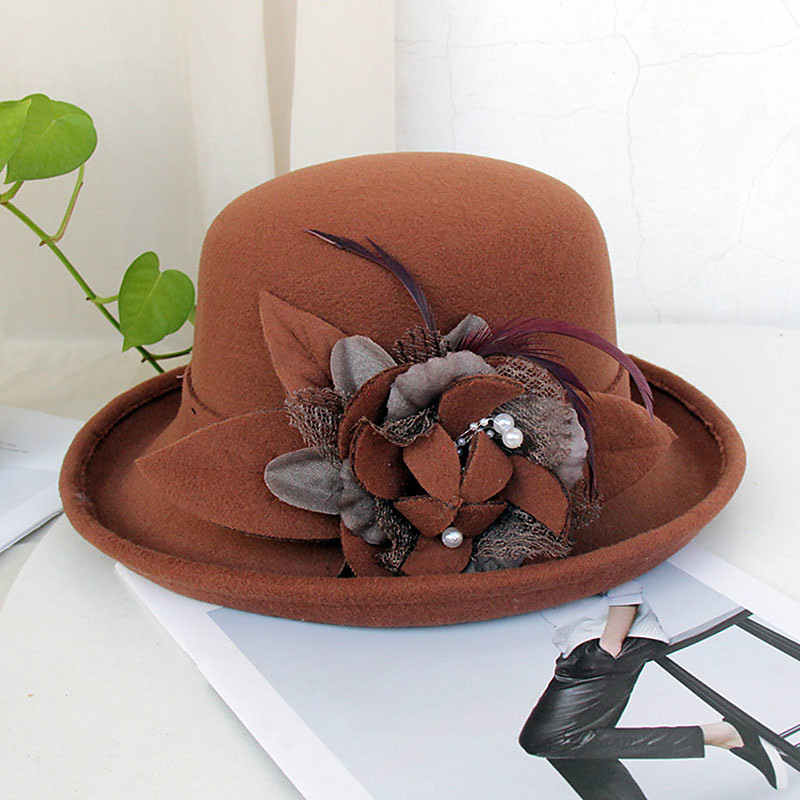 Fascinators Kentucky Derby-Hut Bowler-/Glockenhut aus Faser Strohhut Sonnenhut Hochzeitsabend Party Eleganter Sonnenschutz mit Feder-Blumen-Kopfbedeckung Kopfbedeckung