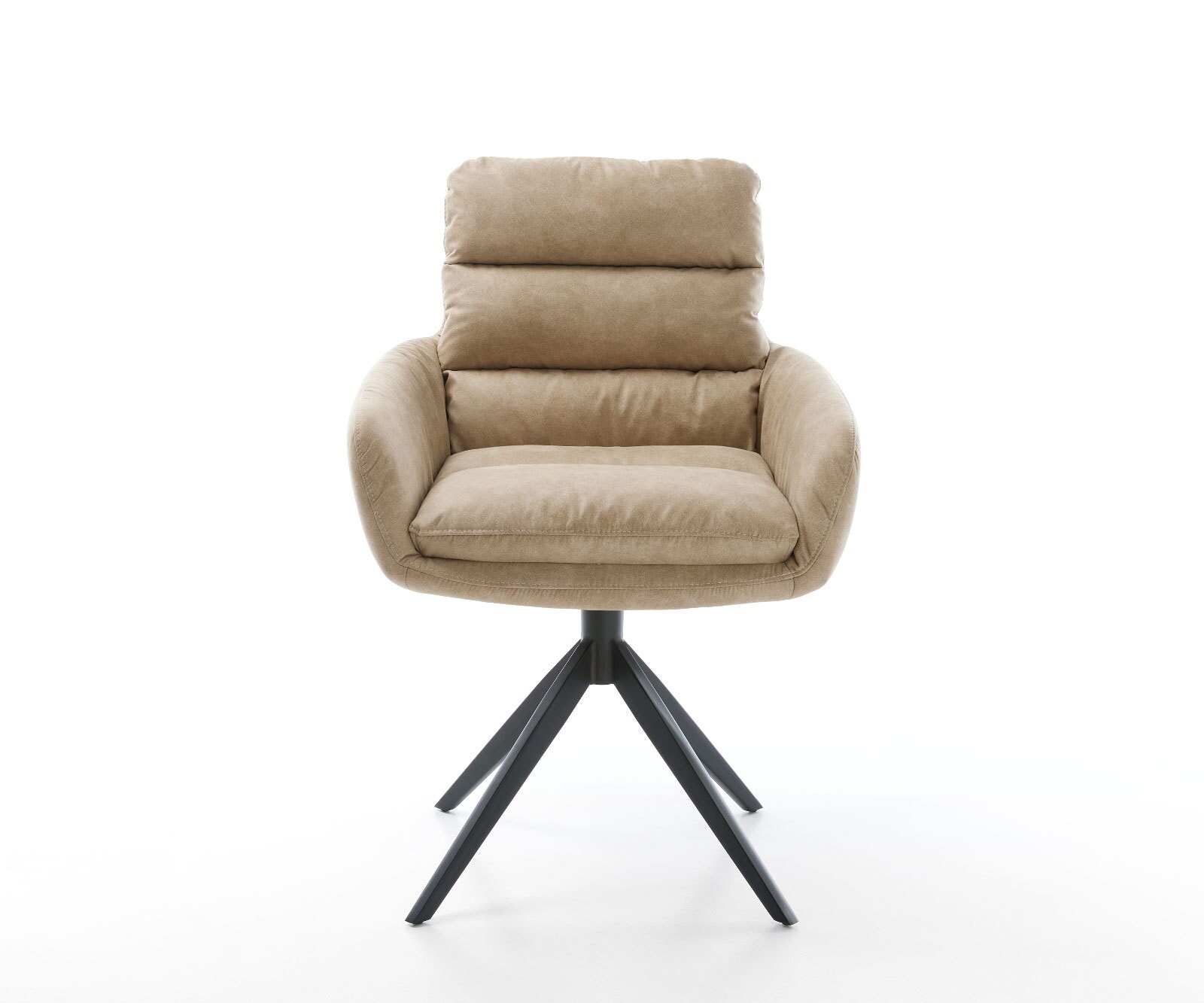 DELIFE Eetkamerstoel Abelia-Flex met armleuning microvelours taupe vintage kruisframe breed roestvrij staal