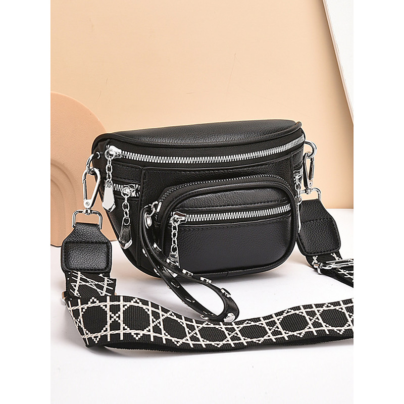 Women's Burgundy Faux Leather Crossbody Chest Bag with Multi Zipper Pockets, Wide Strap Silver Hardware, Stylish Hands-Free Travel Purse for Daily Wear Christmas Holiday Outfits