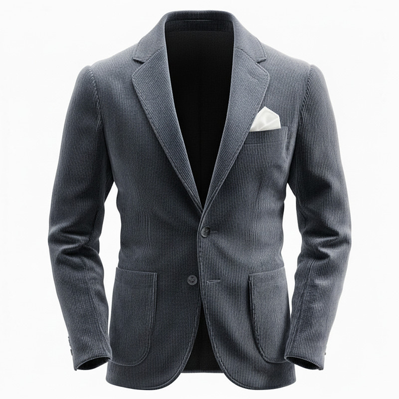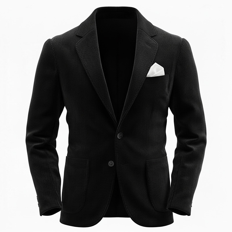 Men's Corduroy Jacket Notch Collar Classic Casual Office Solid Colored Line Blazer Black Burgundy Grey Tailored Fit Single Breasted Two-buttons