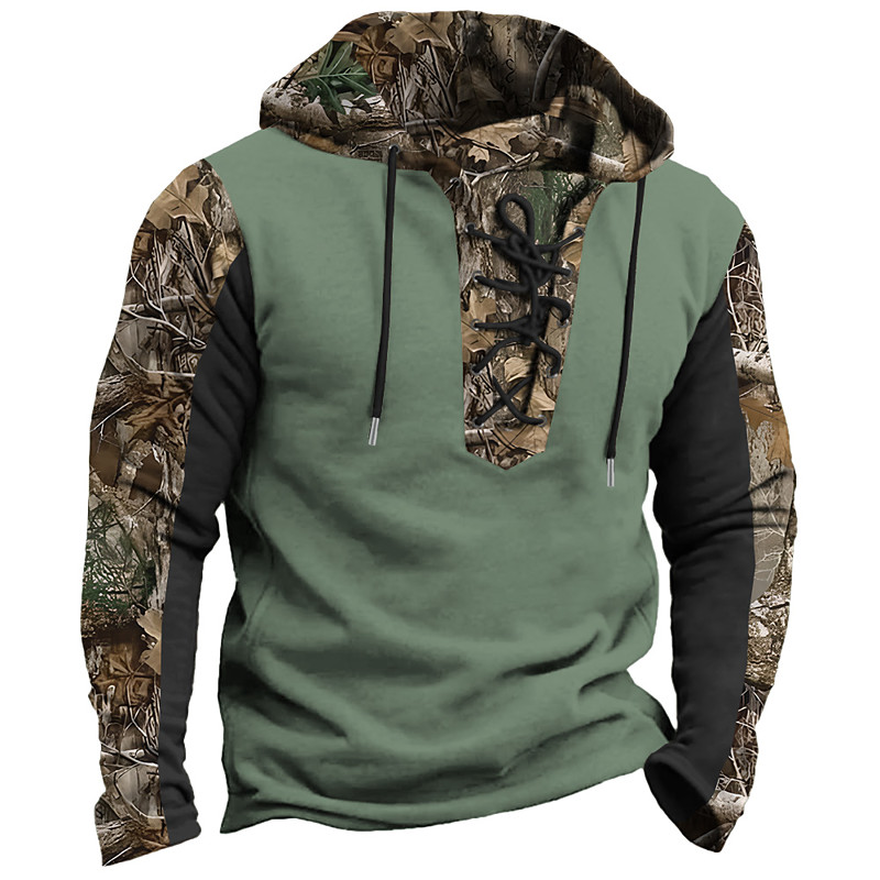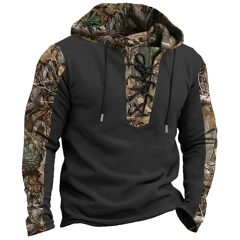 Men's Camo / Camouflage Deer Fleece Hoodies Fashion Ethnic Cowboy Long Sleeve Hooded Party Hunting Black Brown Khaki Dark Blue Military Green Drawstring Fall Winter Designer S M L XL 2XL 3XL