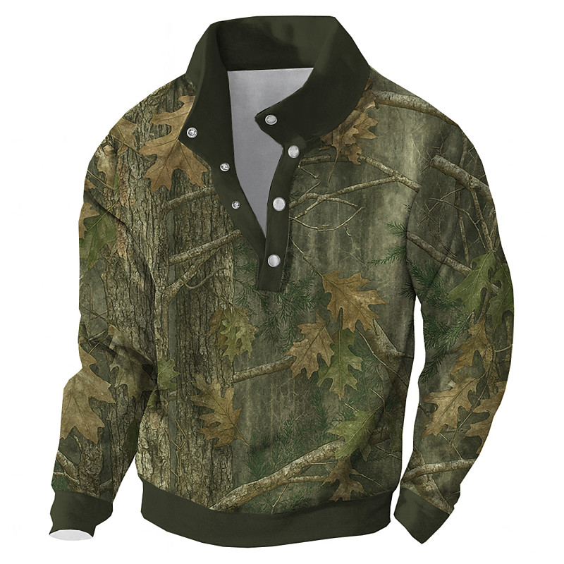Men's Camo Camouflage Sweatshirt Tactical Hunting Long Sleeve High Neck Outdoor Sports Outdoor Blue Army Green Buttons Fall Winter Designer S M L XL XXL 3XL