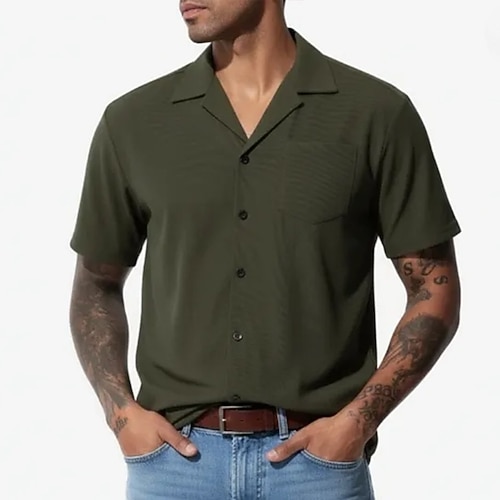 Per uomo Camicia Camicia casual Camicia con Bottoni Nero Kaki Verde militare Manica Corta Semplice Colletto cubano Casuale Quotidiano Tasca Frontale Abbigliamento Elegante Moda Casual