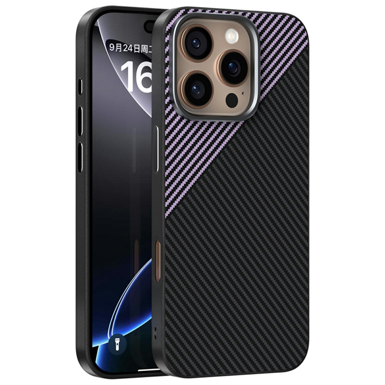 ABEEL Mobilskal till iPhone 16 Pro MagSafe Carbon Fiber Texture (Svart/Lila)