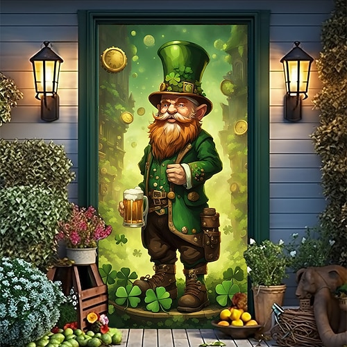 Festa di San Patrizio Poster Copertura della porta Banner per esterni Leprecauno Carino 3D Da serata Dormitorio Stanza per adolescenti Dormitorio universitario Ragazzi Man Cave Frat Bedroom Sfondi di