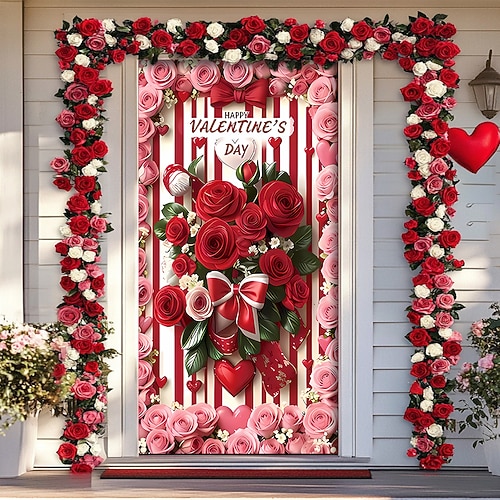 San Valentino Poster Copertura della porta Banner per esterni Rose Cuori Carino Romantico 3D Da serata Dormitorio Stanza per adolescenti Dormitorio universitario Ragazzi Man Cave Frat Bedroom Sfondi