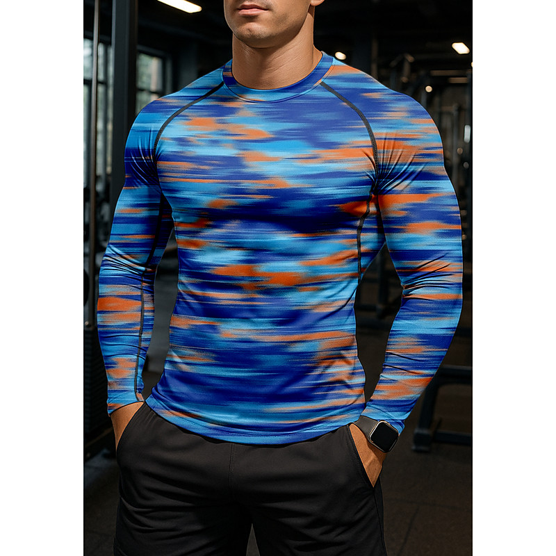 Men's Compression Shirt Running Shirt 3D Print Long Sleeve Base Layer Color Gradient Quick Dry Compression Power Flex Moisture Wicking Gym Workout Active Training Exercise Sportswear Activewear Blue