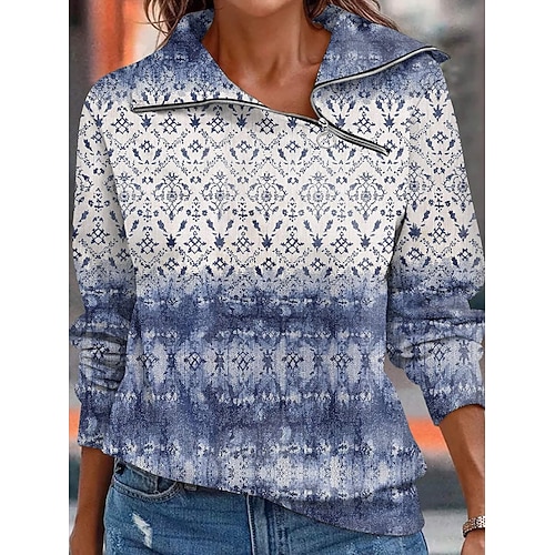 Felpa con Zip per Donna Grafica Moda Casual a Maniche Lunghe Top Regolari Collo Rotondo Quotidiano Streetwear Stampa con Zip Blu Rosa Rosso Arancio Autunno Inverno