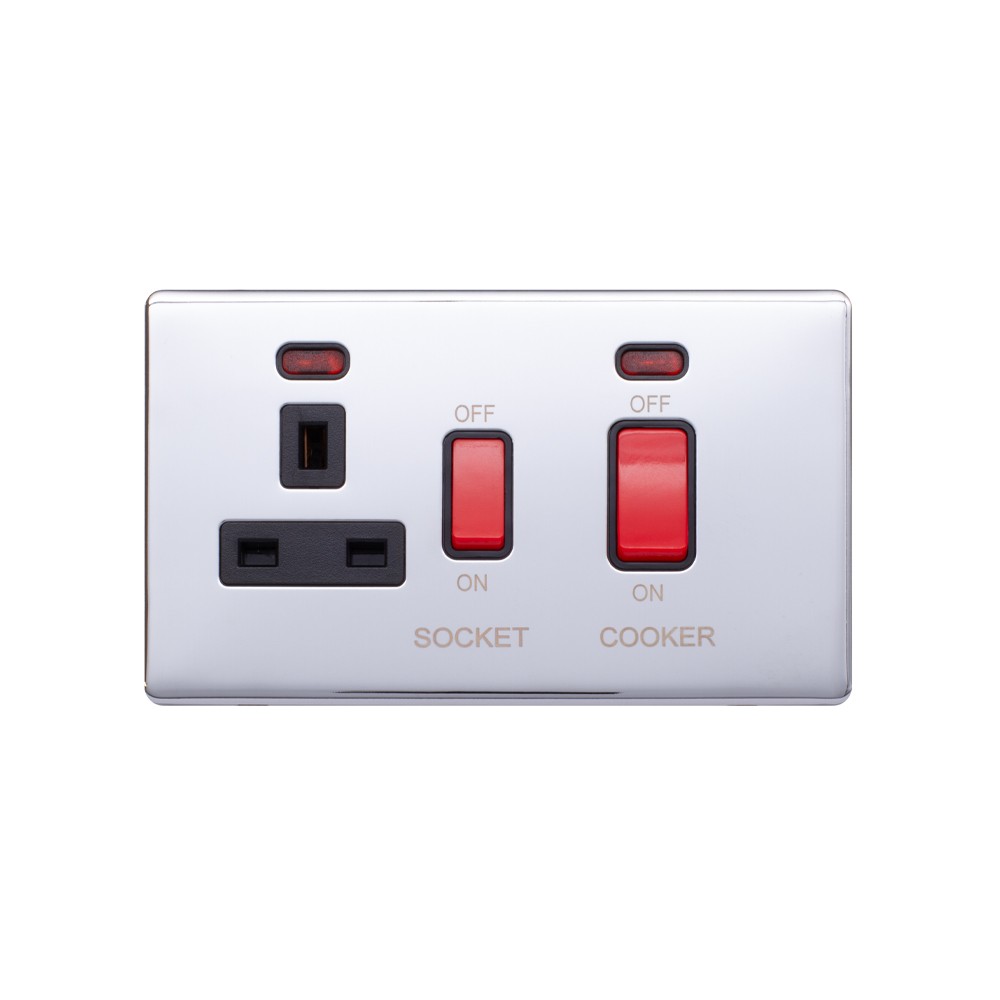 Lieber Brushed Copper 45A Cooker Control Unit & Neon-White Insert Screwless - Size: 146mm x 86mm x 3.1 mm