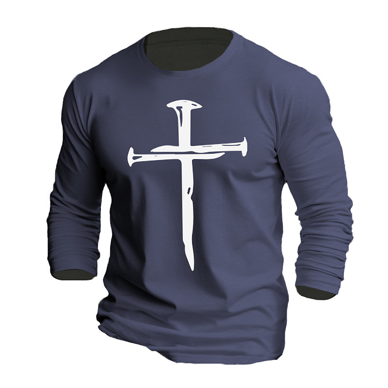 Men's Cross T Shirt 100% Cotton Long Sleeve Graphic Shirt Black White Orange Comfortable Tee Sports Outdoor Holiday Fashion Designer Clothing