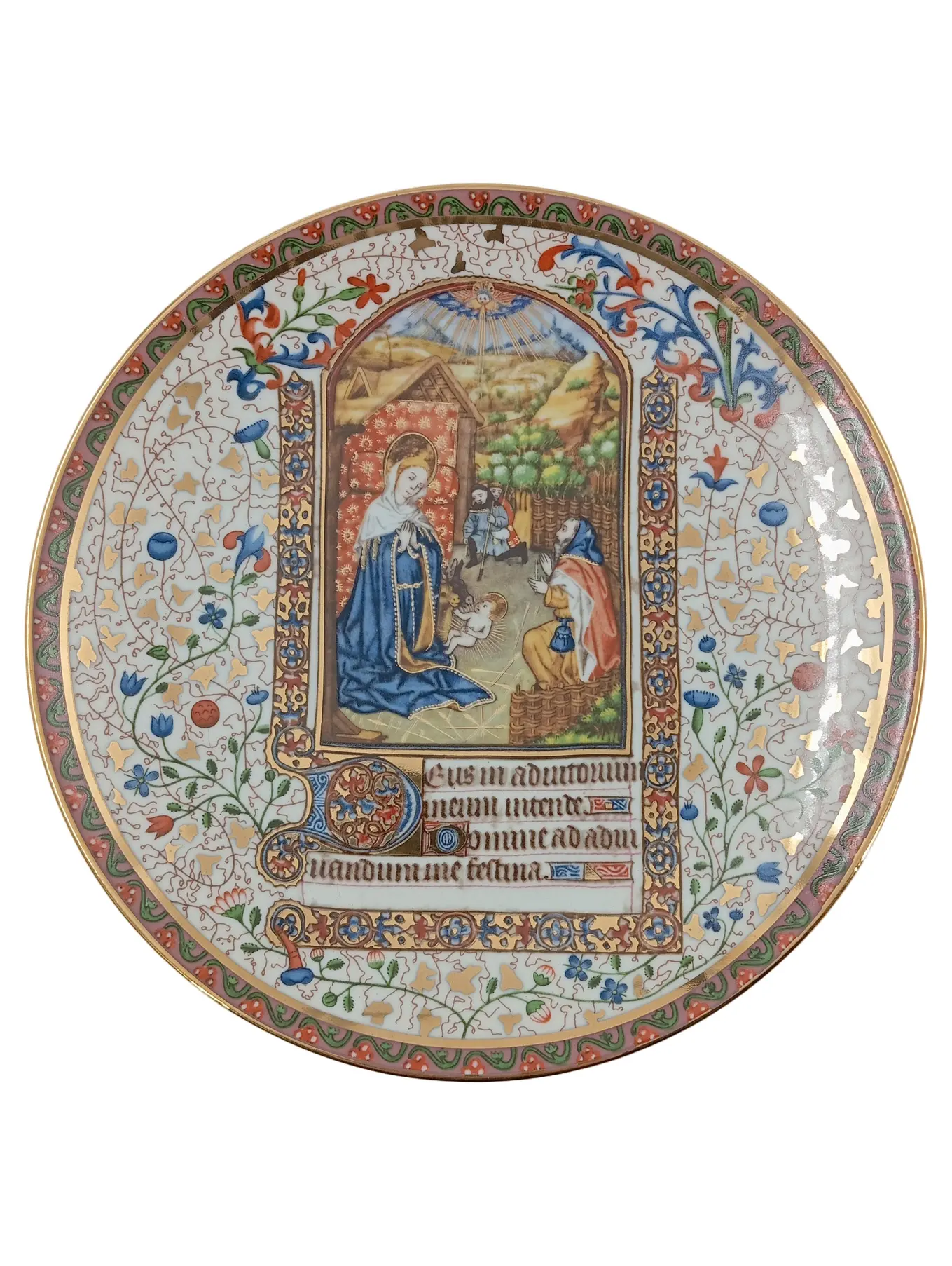 BRADFORD EXCHANGE Sammelteller 20 cm rund, Geburt Jesu, Porzellan, mehrfarbig & gold, Serie Le Porcellane Fontana dei