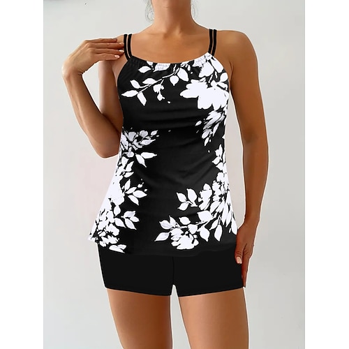 Costume da bagno bikini da donna in 3 pezzi schiena scoperta estate in spiaggia foglie floreali scollo a V senza maniche