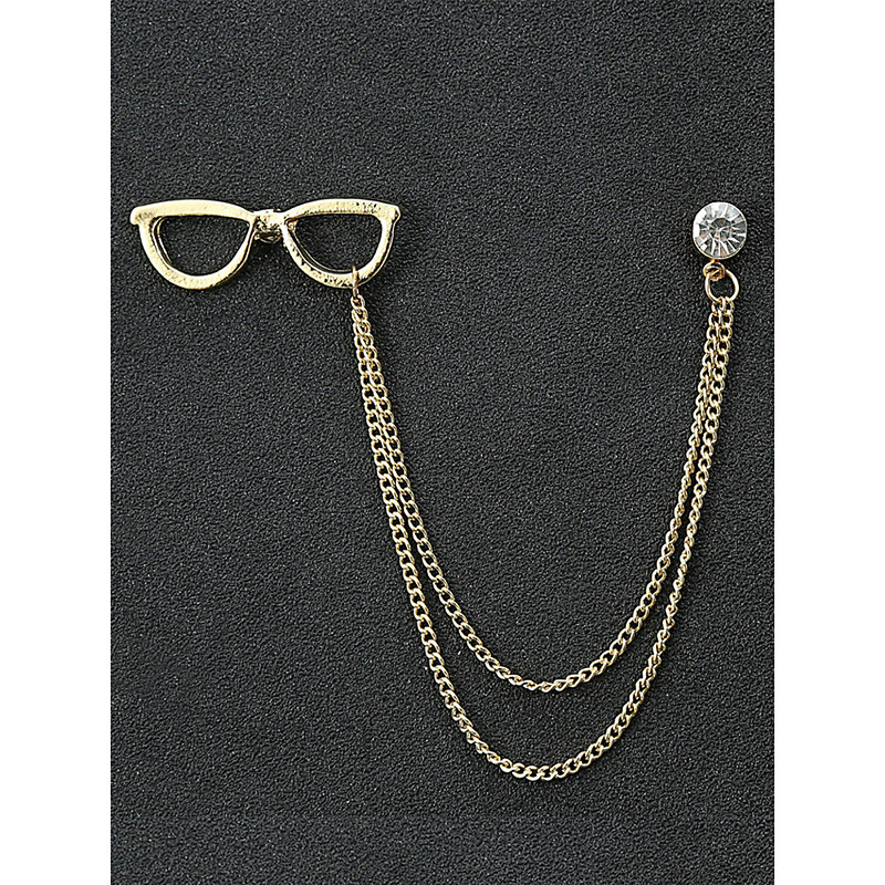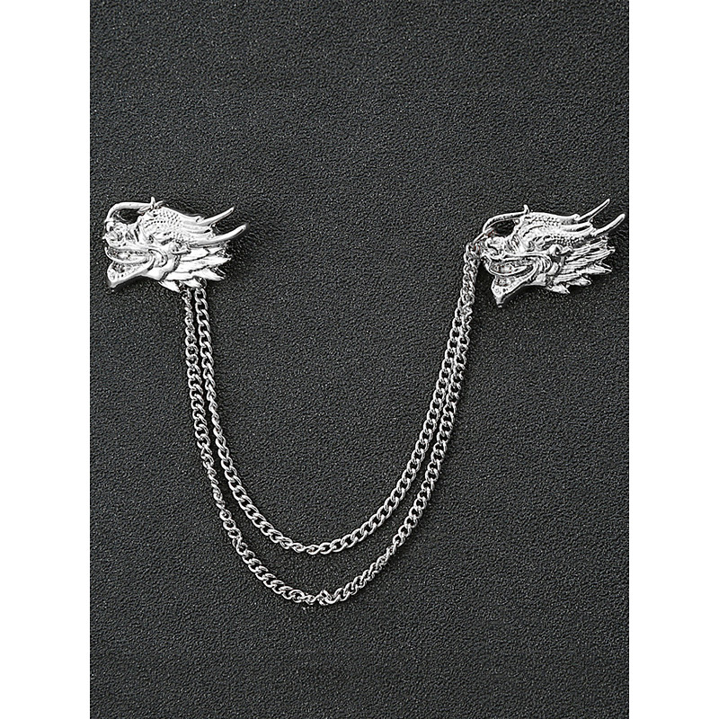 Vintage Blue Gem Collar Chain Brooch – Elegant Double Chain Lapel Pin for Men Women, Gothic Victorian Style Shirt Suit Accessory, Formal Wedding Party Jewelry